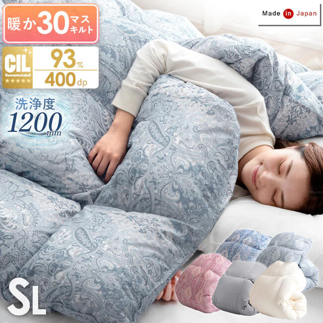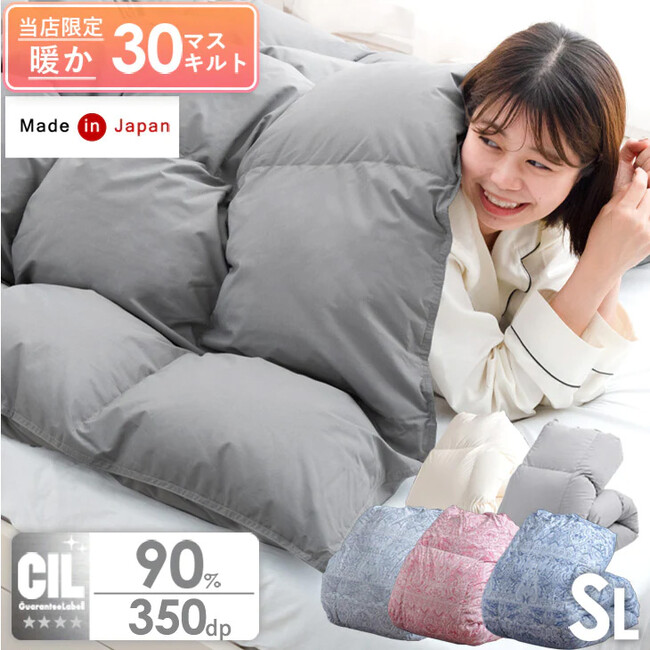 また、ダウンの膨らむ力を示すダウンパワーは300以上となり、冷気が縫い目から逃げにくい立体キルト縫製のため、十分に暖かく快適にご使用いただくことができます。