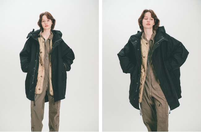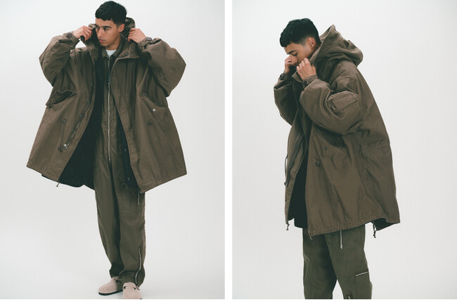 ミリタリーアイテムの佇まい、オーバーサイズシルエットの雰囲気をそのままに、今着たいミリタリーにアレンジ。