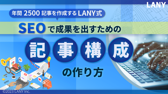 SEOコンサルティングサービスを提供する株式会社LANY(東京都渋谷区、代表取締役社長:竹内渓太)は、年間2,500記事を作成するLANY式 SEOで成果を出すための記事構成の作り方の資料(全44ページ)を無料公開しました。