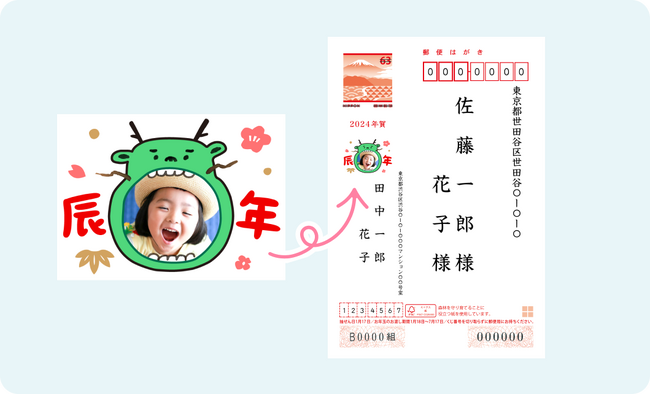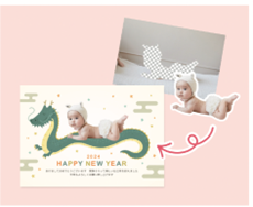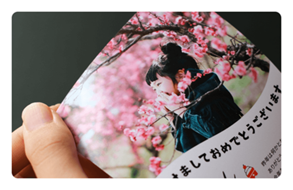 年賀状の宛名面に写真をプリントできる機能です。家族やお子様の写真などを使って、オリジナルの年賀はがきを作れます。