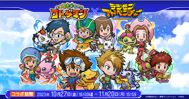 株式会社MIXI(東京都渋谷区、代表取締役社長CEO:木村 弘毅)は、スマホアプリの「ことば」で闘う新感覚RPG「共闘ことばRPG コトダマン」(以下コトダマン)において、『デジモンアドベンチャー』との初コラボを、本年10月27日(金)より開催します。