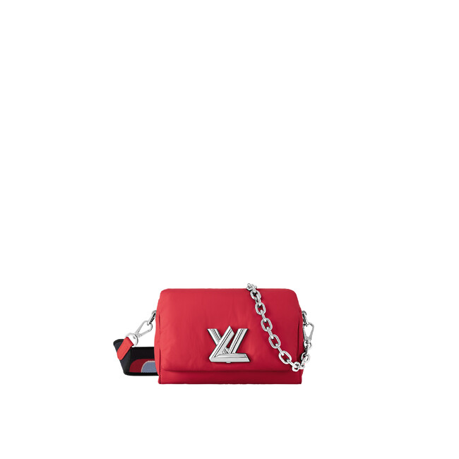 鮮やかなレッドが美しい「ツイスト PM」。リサイクルされたナイロン素材であるECONYL(R)で仕立て、パッド加工を施して、定番のスキージャケットを彷彿とさせるデザインに仕上げました。幅広のテキスタイルストラップとチャンキーチェーンは共に取外し可能で、快適な使い心地を実現します。ストラップの片面にはモノグラム・フラワー スキー パターンが、もう片面にはスポーティなスノーフレークを模った「Vuitton」シグネチャーが織り込まれています。