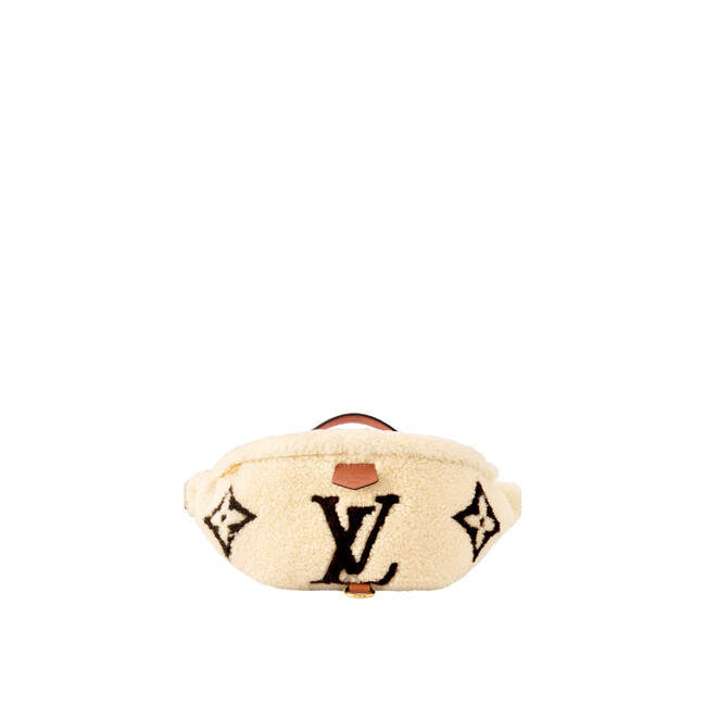 ラグジュアリーな手触りのシアリングを使用した「バムバッグ」。ウエストバッグやショルダーバッグ、クロスボディバッグとしても快適にお楽しみいただけます。ダークカラーのシアリングで表現したモノグラム・パターンを引き立てる、キャラメルカラーのレザーで施したトリミングも魅力。大ぶりのコンパートメントに加え、外側にもバックポケットをあしらっています。