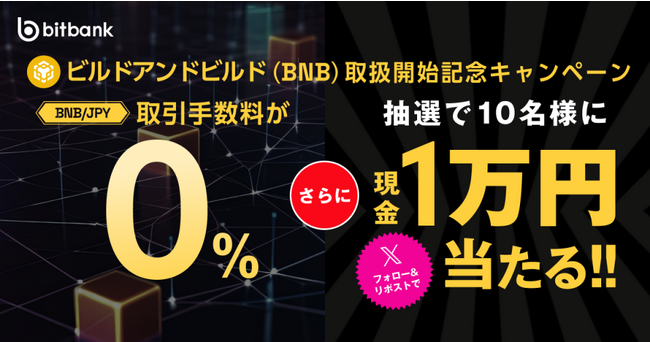 ビットバンク株式会社(本社:東京都品川区、代表取締役社長:廣末紀之、以下当社)は、本日よりビルドアンドビルド(BNB)の取扱いを開始いたしました。