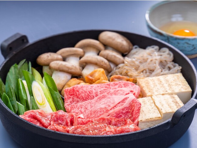 繊細な舌ざわりと旨みが特徴の京都育ちのブランド黒毛和牛「京の肉」、京野菜の中でも極めて歴史のある九条ねぎ、その他カット包装された食材、割り下、卵までセットになった、京都こだわりのすき焼きセットです。