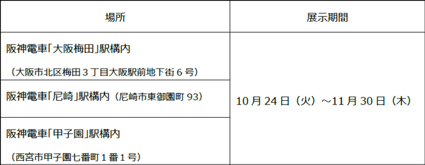 なお、受賞作品は、大阪梅田駅・尼崎駅・甲子園駅の各駅構内でシート展示するとともに、本日からホームページに掲載します。併せて、大賞・準大賞の作品は、阪神電車車内にポスターとして随時掲出します。