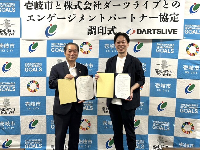 セガサミーグループの株式会社ダーツライブ(本社:東京都品川区、代表取締役社長:阿部 東、以下ダーツライブ)と長崎県壱岐市(市長:白川博一、以下壱岐市)は「壱岐市エンゲージメントパートナー協定」を締結しました。