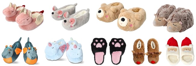 見た目も、履き心地も、ふわふわもこもこ!リピーターも多い大人気のキャラクタースリッパシリーズです。毎年さまざまなアニマルたちが登場します。多数が22cm~24.5cmと、キッズにも大人にも対応。ねずみやクリスマス限定のトナカイ、サンタクロースのデザインは、25.5cmと大きめサイズもご用意。今年は(も?)お気に入りの1点を見つけて、あたたかい生活を!辰年の2024年に向けて、ドラゴンデザインもおすすめです。