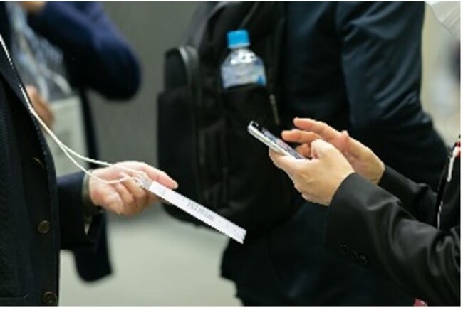 参加者のパスに印字されたQRコードを出展社が持つスマホカメラで読み取ることで、出展社毎の管理画面にリアルタムに参加者リードを提供。専用アプリを事前ダウンロードして利用頂くことで実現が可能です。