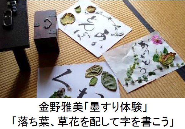 ◆金野雅美/「墨すり体験」「落ち葉、草花を配して字を書こう」