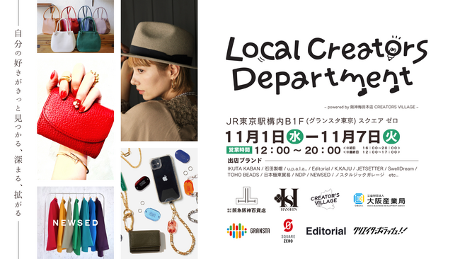 東京駅では「Local Creators Department~powered by 阪神梅田本店CREATORS VILLAGE~」をテーマに、約20以上のクリエイターの物販、大型デジタルサイネージでの100以上のクリエイターのデジタルアート紹介をおこないます。東京駅「グランスタ東京」での新たな発信にご期待ください。