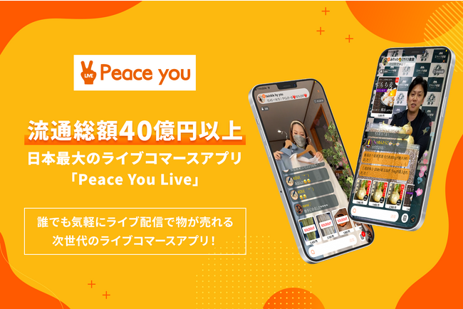「ピースユーライブ」は、ECとライブ配信を組み合わせたライブコマースアプリです。2020年9月のサービス開始から急速に成長を続け、約3年間で流通総額は40億円以上、ライブ視聴時間は200万時間に達し、延べ4,000人以上のライバーが登録しています。販売されている商品ジャンルは、アパレルやコスメ、食品、雑貨など多岐にわたる、日本最大級のライブコマースアプリです。