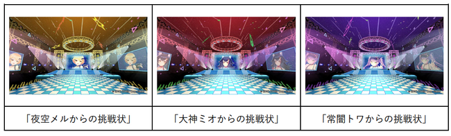 さらに、各コラボメンバーのオリジナル楽曲『かぷっとNight☆Sky/ 夜空メル』、『Howling/ 大神ミオ』、『ライメイ/ 常闇トワ』が、それぞれの専用ステージで流れます。