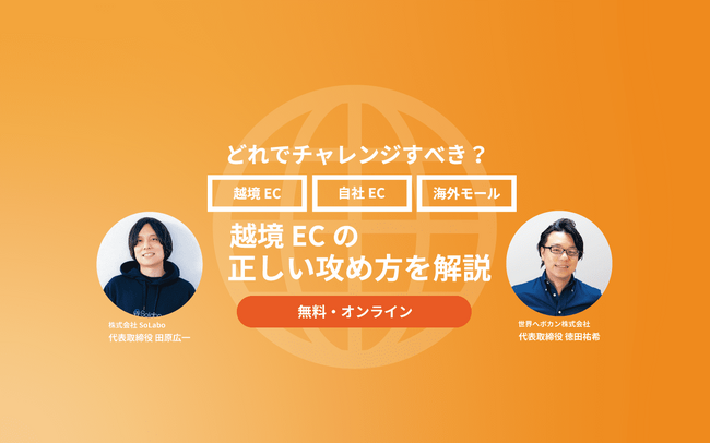 株式会社SoLabo(本社:東京都千代田区、代表取締役:田原広一)は、越境ECサイトの構築や海外向けコンサルティングを行う世界へボカン株式会社 (本社:東京都豊島区、代表取締役:徳田祐希)と共催し、越境ECにチャレンジし成功確率を上げるノウハウを紹介するセミナーを開催いたします。
