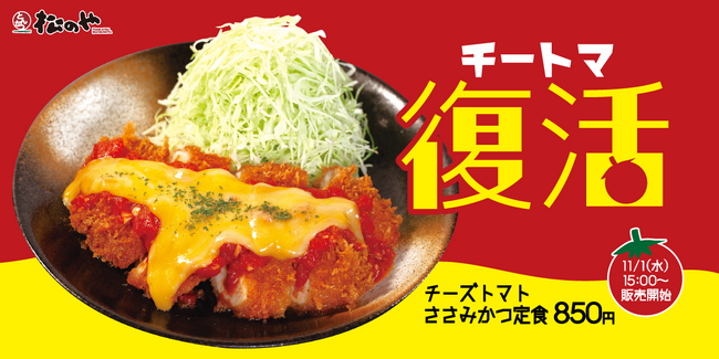 株式会社松屋フーズ(本社:東京都武蔵野市、代表取締役社長:瓦葺 一利)では、とんかつ専門店の「松のや」におきまして、2023年11月1日(水)午後3時より、「チーズトマトささみかつ」を発売いたします。