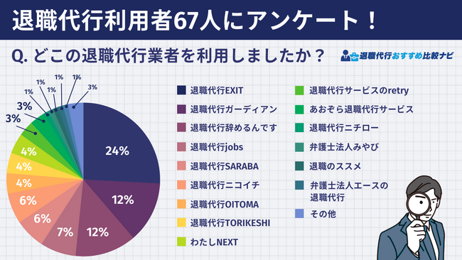 ユニークキャリア株式会社(本社:東京都豊島区、代表取締役:岸田佳祐、HP:https://1dau.co.jp)が運営する「退職代行おすすめ比較ナビ」は、退職代行サービスを利用したことのある男女67名に退職代行業者に関するアンケート調査を実施しました。