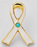 ★今年のピンバッジの中央には、「子宮頸がんへの対策」を表わすティールカラーをイメージした色石をあしらいました