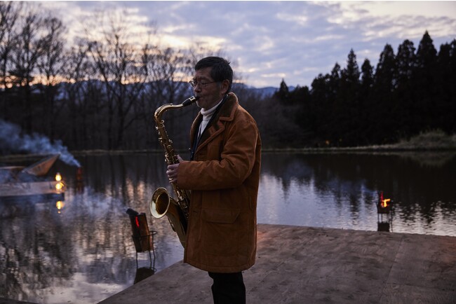 土日、祝日限定で、那須町在住の音楽家による演奏会を実施します。冬の澄んだ空気の中、水上デッキの上で奏でるサックスの美しい音色が水田に響き渡る演奏会です。