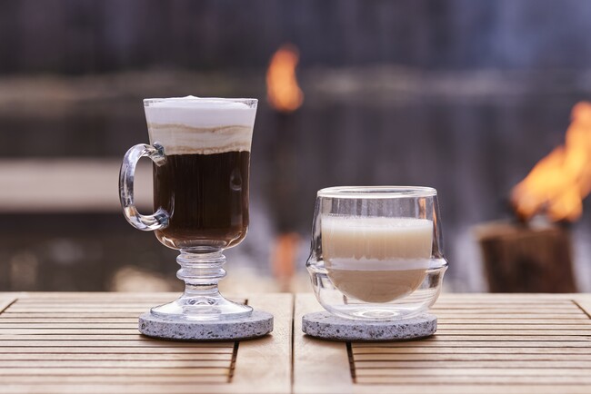 田んぼにちなんだ温かい甘酒の他、チョコレートを使用したドリンクを提供します。甘酒は米麹で作られているノンアルコールのもので、小さなお子様から大人まで飲むことができます。もう一方は、チョコレートリキュールとエスプレッソを合わせた上に、お好みでクリームをのせるドリンクです。飲み進めるごとに甘みと苦みの味の変化を楽しめます。