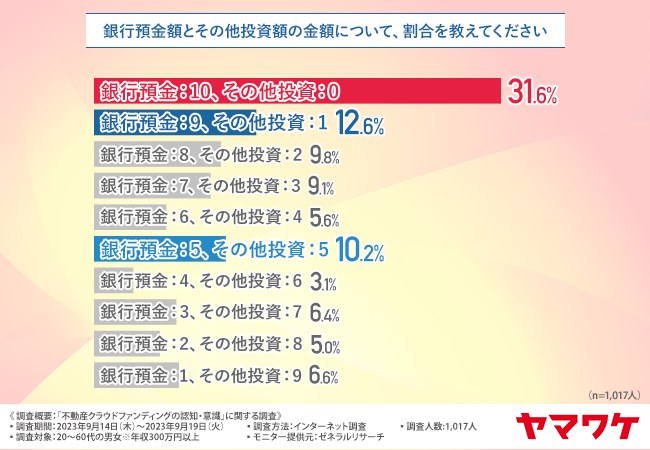 投資・配当型クラウドファンディング『ヤマワケ』(https://yamawake.jp/)の運営会社であるWeCapital株式会社(本社所在地:東京都港区、代表取締役:松田 悠介/橋口 遼)は、20~60代の男女(年収300万円以上)の1,017人を対象に「不動産クラウドファンディングの認知・意識」に関する調査を実施しました。