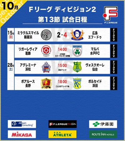 10月28日(土)にFリーグ2023-2024 ディビジョン2 第13節の3試合を開催いたします。