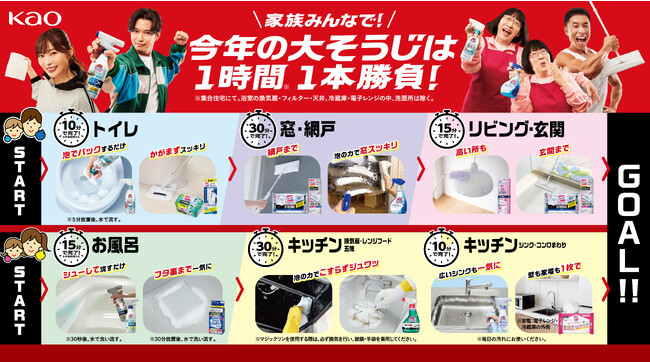 忙しくて時間がない年末に向けて新提案! 花王「1時間(※1) 1本勝負!大そうじ」キャンペーン開始