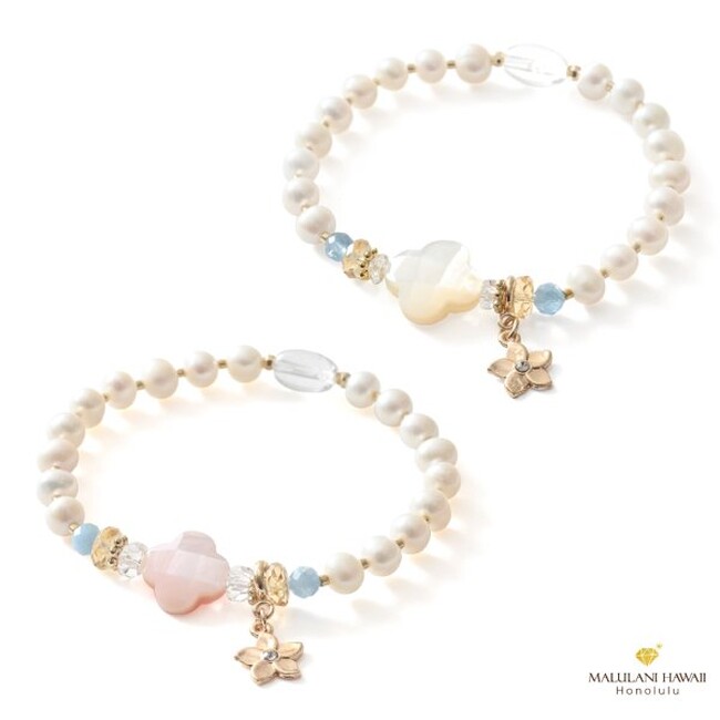 そんな育てる力で願望実現、仕事運や結婚運を引き寄せる「マザーオブパール」の花をメインに作られたやさしく輝くブレスは、あなたの魅力と能力を引き出すはず。