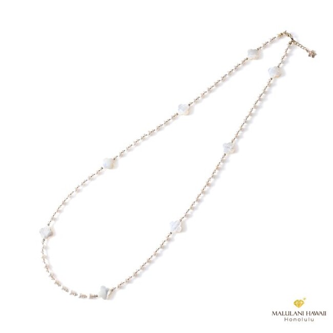 魅力を引き出し、品格を高める「淡水パール」と願望実現と結婚運、仕事運をもたらし、母性の象徴でもある「マザーオブパール」をふんだんに使った純白のネックレス。