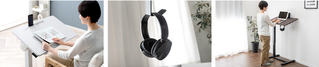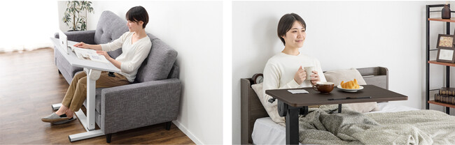 タンスのゲンより食事や仕事、料理などマルチに使える昇降式サイドテーブルを発売ソファやベッド横の省スペースにも配置できシーンに合わせて最適な高さや角度に!