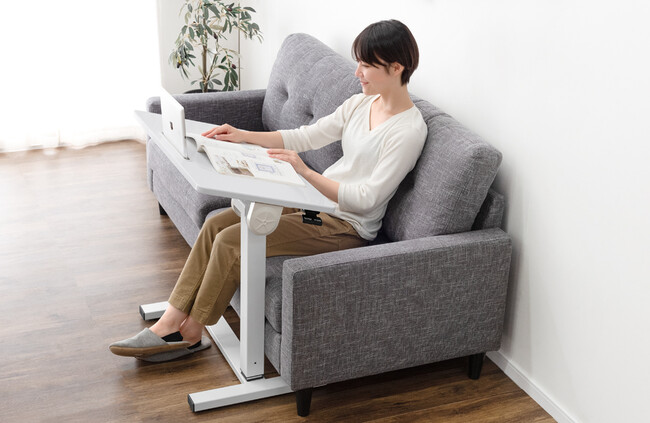 今回、高さや角度の調整機能付きでリビングや寝室などあらゆるシーンで快適に使用できる“昇降式サイドテーブル”が登場しました。