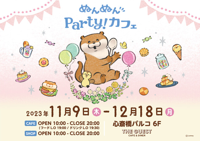 株式会社パルコは、池袋PARCOにて好評開催中の『可愛い嘘のカワウソ』第2弾コラボレーションカフェ「ぬんぬん Party!カフェ」を、11/9(木)より心斎橋PARCO6F THE GUEST cafe&diner にて開催いたします。