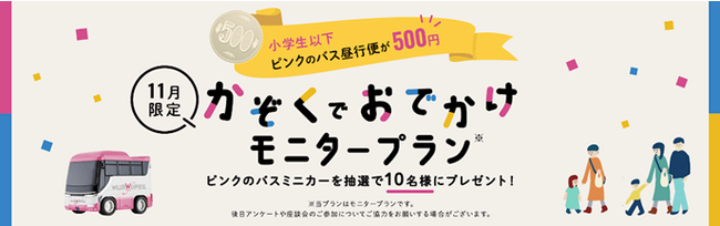 お子様連れのご家族必見!秋のおでかけは安心・快適な“ピンクのバス”で! 11月限定で小学生以下が片道500円になる『かぞくでおでかけモニタープラン』を販売します