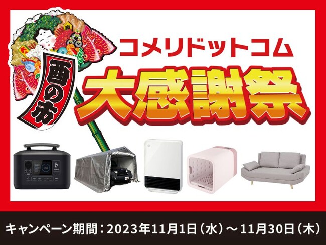 ホームセンターの「コメリパワー」や「コメリハード&グリーン」を通し地域のライフラインとして、地元のプロを応援する株式会社コメリ(所在地:新潟県 新潟市、代表取締役社長:捧 雄一郎)は、2023年11月1日(水)より、オンラインショッピングサイト「コメリドットコム」にて「酉の市 コメリドットコム大感謝祭」を開始いたします。