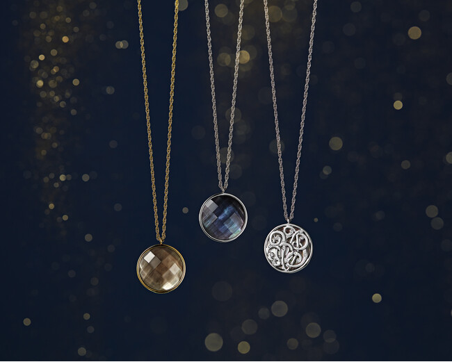 優しい輝きと深みのあるカラーのダブレットストーンと、クラシカルなタイポグラフィーモチーフ、二つの表情が楽しめるリバーシブルネックレスを発売。カラーは温かみのあるライトブラウンと幻想的なブルーの2色展開。