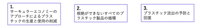 日本でも、問題解決に積極的に取り組む企業が、「国際プラスチック条約 企業連合(日本)」を結成しました。企業連合として、日本政府に対し、削減、循環、予防・軽減を3つの柱とした、法的拘束力のある世界共通のルールを基盤とした条約制定に向け、リーダーシップを発揮することを求めていきます。