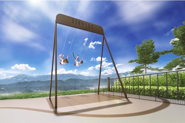 雄大な中央アルプスを望む展望エリア「メープルコート」に、大型ブランコ「トキメキスウィング」(商標登録出願中)を中心とする6つの遊具(有料)を備えたプレイグラウンドがオープンしました。「トキメキスウィング」は大人の方もご利用でき、中央アルプスへ向かって飛び込むかのような爽快感を楽しんでいただけます。
