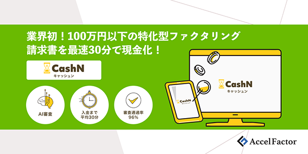 即日ファクタリングのアクセルファクターが100万円以下特化型ファクタリングサービス「CashN(キャッシュン)」をリリース!