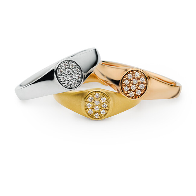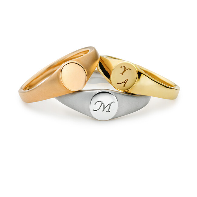 ユニセックスジュエリーとして人気の高いシグネット(印台)リングをベースに、地金素材・仕上げ・イニシャルまたはダイヤモンドの有無を選べるリング。“紳士の指輪”とも呼ばれ、男性が身に着けるエンゲージメントリングや婚約記念品としてもおすすめのリング。