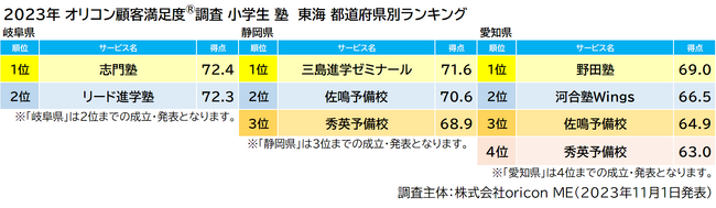 2023年 オリコン顧客満足度(R)調査 小学生 塾 東海