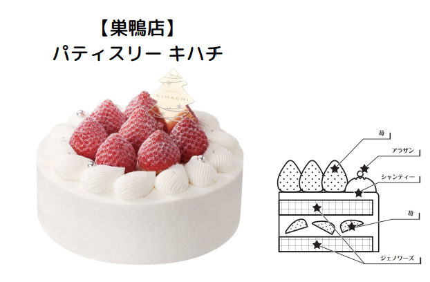 ・商品説明:苺の甘味、酸味、ジェノワーズ、シャンティーの口どけ、口に入れたあとののど越し、口の中に広がる香り、全てのバランスを重視したショートケーキ。