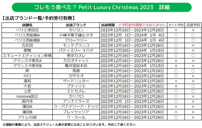 15店舗を展開する「コレもう食べた?」店舗にて、『コレもう食べた?Petit Luxury Christmas 2023』と題し