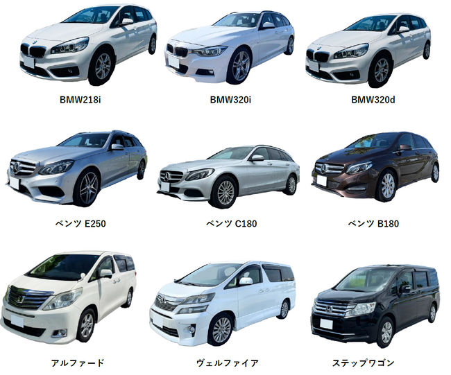 コンパクトカーからベンツ、BMWなどの輸入車までラインナップ
