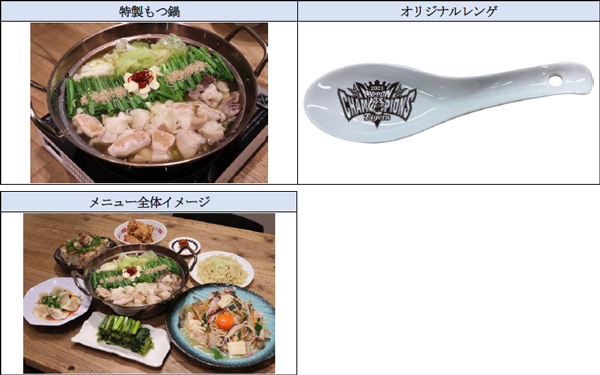 本プランでは、ストライク軒こだわりのラーメンスープを使用した「特製もつ鍋」をご提供するほか、ご参加いただいた全てのお客様に、阪神タイガースの日本一記念ロゴがデザインされた「オリジナルレンゲ」をお1人様につき1つプレゼントいたします。忘年会や新年会、ファン同士の集いなどこの機会にぜひご利用ください。
