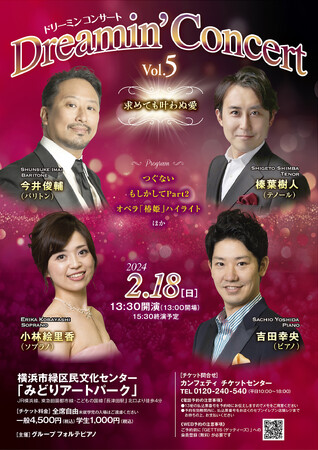 グループ フォルテピアノ主催、『Dreamin’ Concert(ドリーミンコンサート)Vol.5~求めても叶わぬ愛~』が2024年2月18日 (日)に横浜市緑区民文化センター みどりアートパーク(神奈川県横浜市緑区長津田二丁目1番3号)にて開催されます。