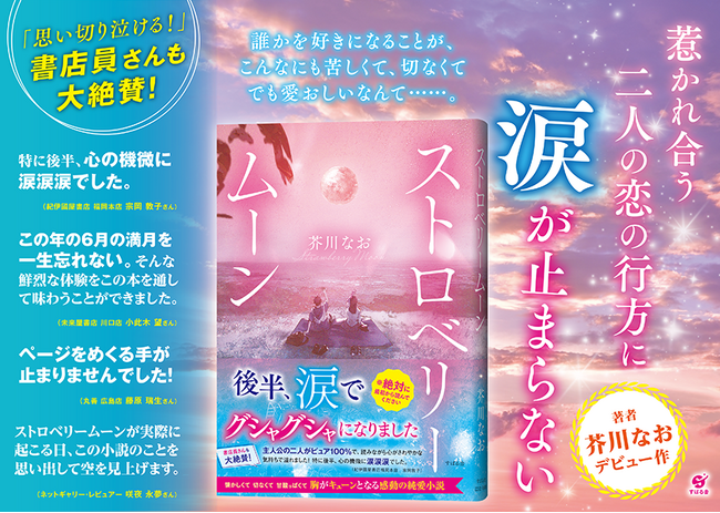芥川なお著『ストロベリームーン』(すばる舎、2023年4月28日発売)も、6月4日当日、全国の書店で売上が爆増。その後も勢い止まらず、発売6カ月の現在までで、デビュー小説としては異例の発行部数9刷53000部を突破しました。