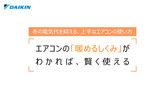 こうしたことから、ダイキンは、節電の方法やその理由を分かりやすく伝えることを目的に、エアコンの仕組みや上手な節電方法を解説したWEBコンテンツ「エアコンのしくみと電気代の関係『暖めるしくみ』編」を本日11月7日に公開しました。また、コンテンツ内には動画「エアコンの『暖めるしくみ』がわかれば、賢く使える」も用意し、エアコンの仕組みや効果的な節電につながる理由を分かりやすくご紹介しています。