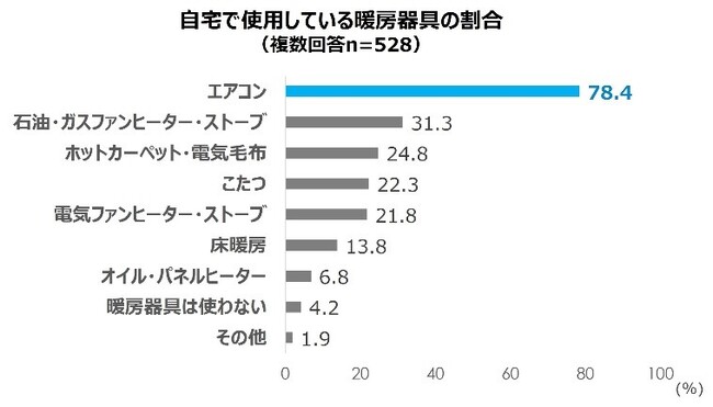 自宅で使われている暖房器具の第1位は「エアコン」(78.4%)
