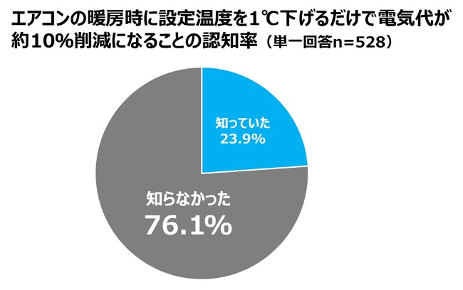 約8割の人が「冬のエアコンの設定温度を1℃下げると約10%の節電になる」ことを知らない