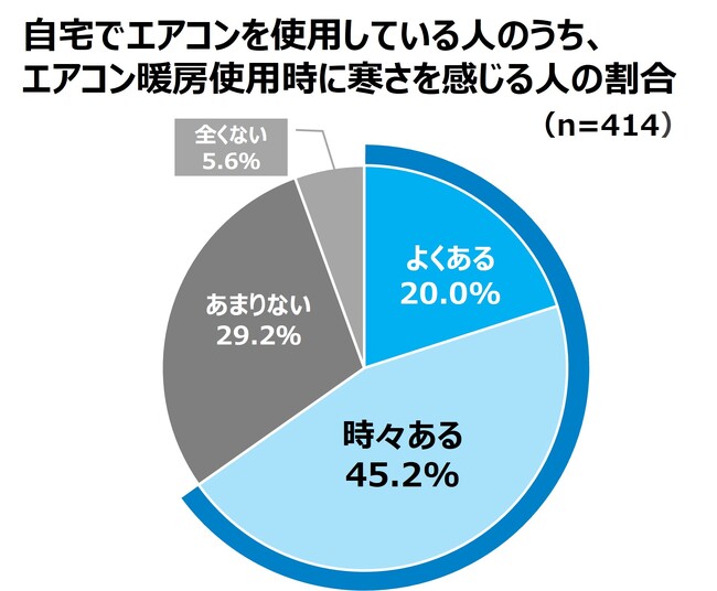 今回の調査では、冬にエアコンを使用している人の約65%の人がエアコン運転時にも寒さを感じており、そのうちの約76%は、肌寒くなるとエアコンの設定温度を上げていることが分かりました。
