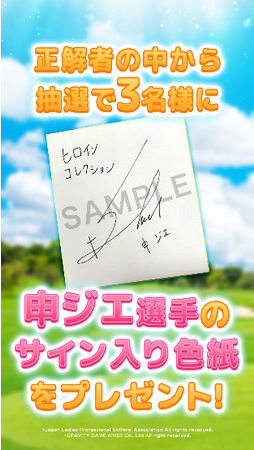 正解者の中から抽選により「申ジエ選手直筆サイン色紙」を3名様にプレゼント